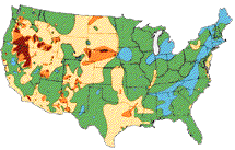 which are noticeably absent in Texas, mark such regions. In the U.S.,